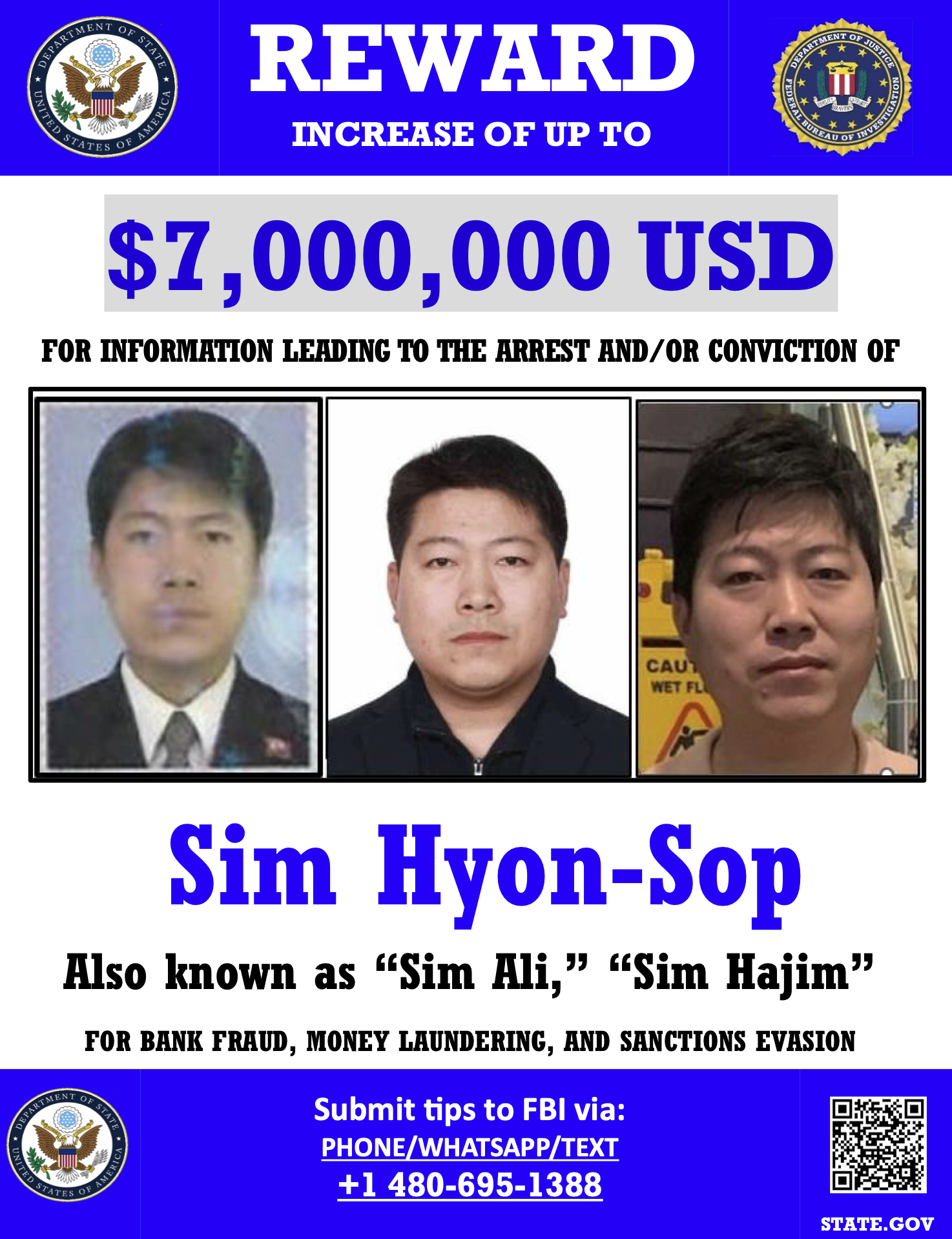 July 24, 2025: Reward increased to up to USD 7 million